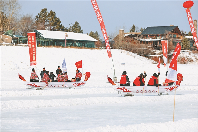 这个冰雪旅游季,漠河深度开发冰雪旅游项目,在原有的滑雪、赛车、雪地摩托等冰雪运动的基础上,深度融合“龙年、龙江、龙源、龙舟、龙抬头”等传统文化元素,打造了中国最北冰上龙舟赛事。“希望我们在龙年龙抬头,交好运,下次举办我们依然还会参加,争取再次拿第一。”获奖选手王洪亮说。