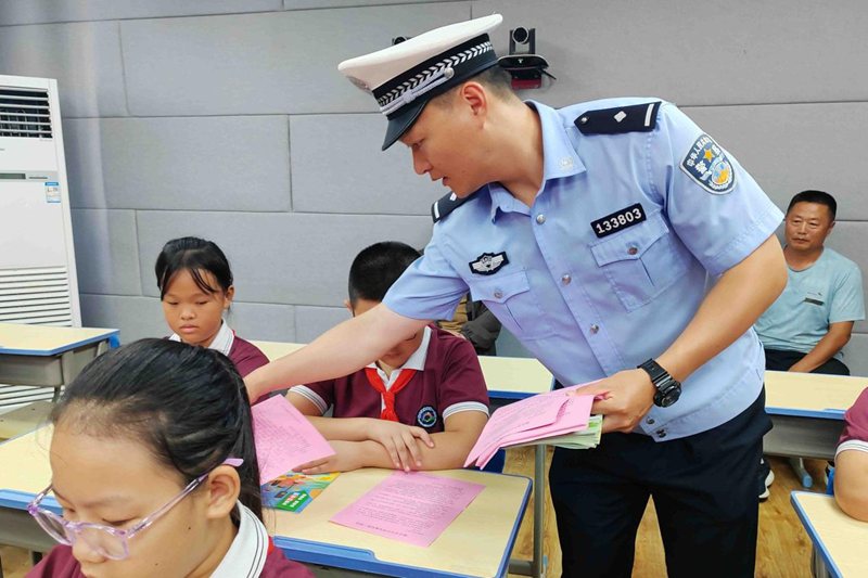 活动中,大队宣传民警结合辖区交通安全形势与学生日常出行等特点,通过播放安全出行警示教育片、现场讲解、发放宣传手册等形式向同学们普及交通安全法律法规知识,以及如何安全乘车、安全步行、安全骑车等内容,并以互动交流的方式为在场学生们讲解交通安全标志标识,交通出行中不系安全带、不佩戴安全头盔、闯红灯、在马路上嬉戏打闹、乱穿马路或翻越交通隔离护栏等违法行为的危害性,教育学生要自觉遵守道路交通法律法规,骑乘电动车时应佩戴好安全头盔、乘坐汽车时系好安全带,坚决杜绝不文明交通行为和交通陋习,自觉养成文明交通的良好习惯,争做道路交通安全的倡导者、践行者与宣传者,真正做到安全文明出行。