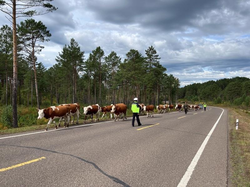 每次牲畜转场大多由一名养殖户照料,因牛群数量多、分散广,养殖户根本顾不过来,部分牛时不时窜向路中央,过往车辆只能小心翼翼避让,交通安全隐患重重。针对转场路线长、牲畜数量多、车辆与畜群混行等实际情况,呼玛县公安局交通管理大队提前谋划、精心部署。转场当日,天还未亮,民辅警们就已在集合点等候。他们与养殖户一起检查牛群状态、整理物资,随后便踏上了转场之路。一路上,民辅警们分散在牛群周围,有的在前方引导,及时疏导交通,指挥过往车辆减速慢行,确保车辆与畜群有序通行;有的在后方压阵,防止牛群掉队;有的在两侧警戒,用温和的呼喊声和手势指挥牛群前进方向。
