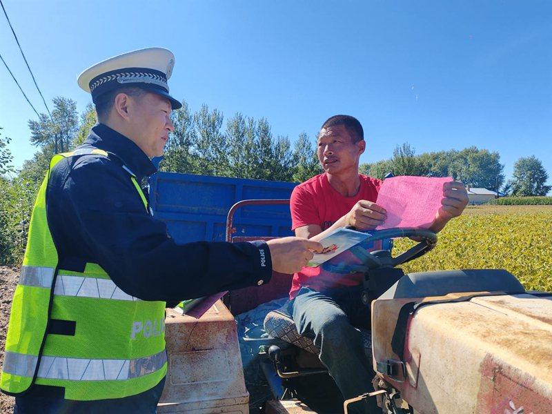 活动中,民警走进农村大集、深入田间地头,针对秋季农忙时节农村道路上大型农机具、农用车、三轮车等车辆增多的情况,通过面对面宣传、粘贴海报、发放宣传资料、悬挂宣传条幅等方式,用通俗易懂的语言向群众详细讲解酒醉驾、无证驾驶、农用车违法载人、超员超载等交通违法行为的严重危害,引导广大群众养成良好的交通习惯,做到秋收生产、交通安全“两不误”,全力保障秋收时节农村道路安全、平稳、畅通。同时,扎实推进“亮尾”行动,为大型农机具、农用车、电动三轮车等车身无反光标识、标识不清或老化、标识不完整的车辆粘贴反光标识,让群众深切感受到车辆“亮尾”的重要性,最大限度消除交通安全风险隐患。