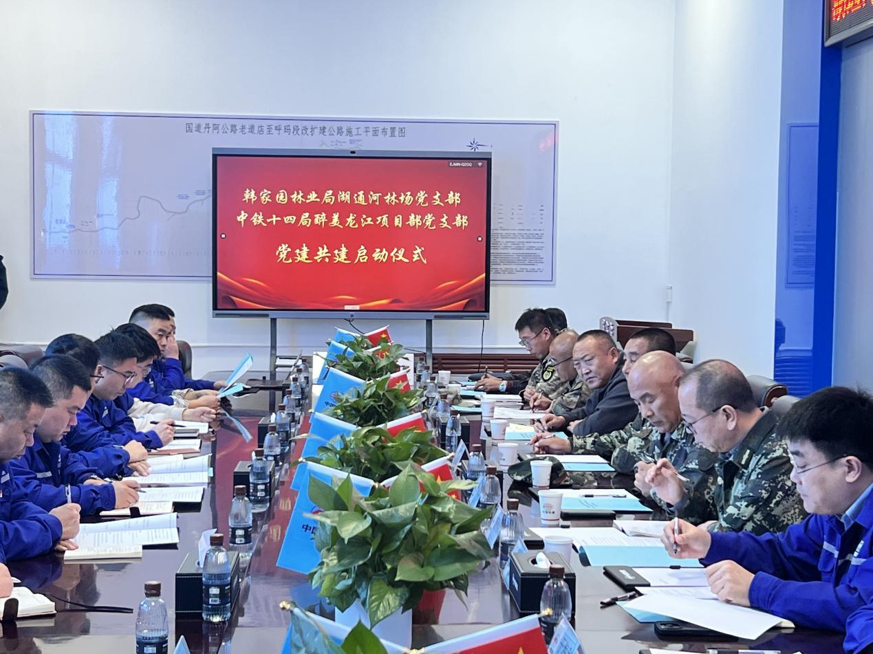 双方在中铁十四局醉美龙江项目部会议室举行了党建共建启动仪式,党组织负责人分别介绍了各自单位的支部建设、重点任务开展情况,就党员作用发挥、森林防火任务、资源保护态势、职工双增、施工安全等工作进行了交流探讨,形成了“聚合力、守底线、互帮扶、齐发展”的融合发展思路。
