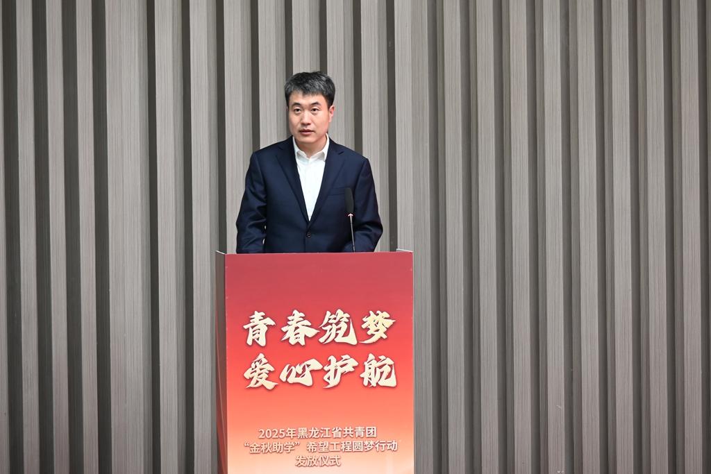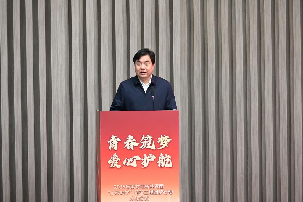 黑龙江经济网讯(王丹阳 于衍行 记者祝东)9月23日,由共青团黑龙江省委员会、黑龙江省青少年发展基金会主办,共青团齐齐哈尔市委员会、齐齐哈尔大学承办的2025年黑龙江省共青团“金秋助学”希望工程圆梦行动发放仪式在齐齐哈尔大学成功举办。共青团黑龙江省委员会副书记张涛,中共齐齐哈尔市委副书记刘振江,齐齐哈尔大学党委副书记张文治,黑龙江省希望工程捐助中心主任杜晶,黑龙江北大仓集团有限公司党委书记、总裁隋熙凤,共青团齐齐哈尔市委员会书记王刚,以及社会各界爱心企业、齐齐哈尔市学生代表等共计300余人参加本次活动。
