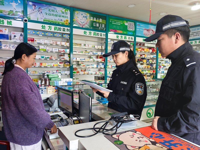 此次检查行动重点聚焦辖区内药品经营企业等关键场所,检查民警严格对照“麻精药品”管理相关法规,逐一核查药品采购台账、储存条件、处方开具与审核流程,确保“来源可溯、去向可查、全程可控”。