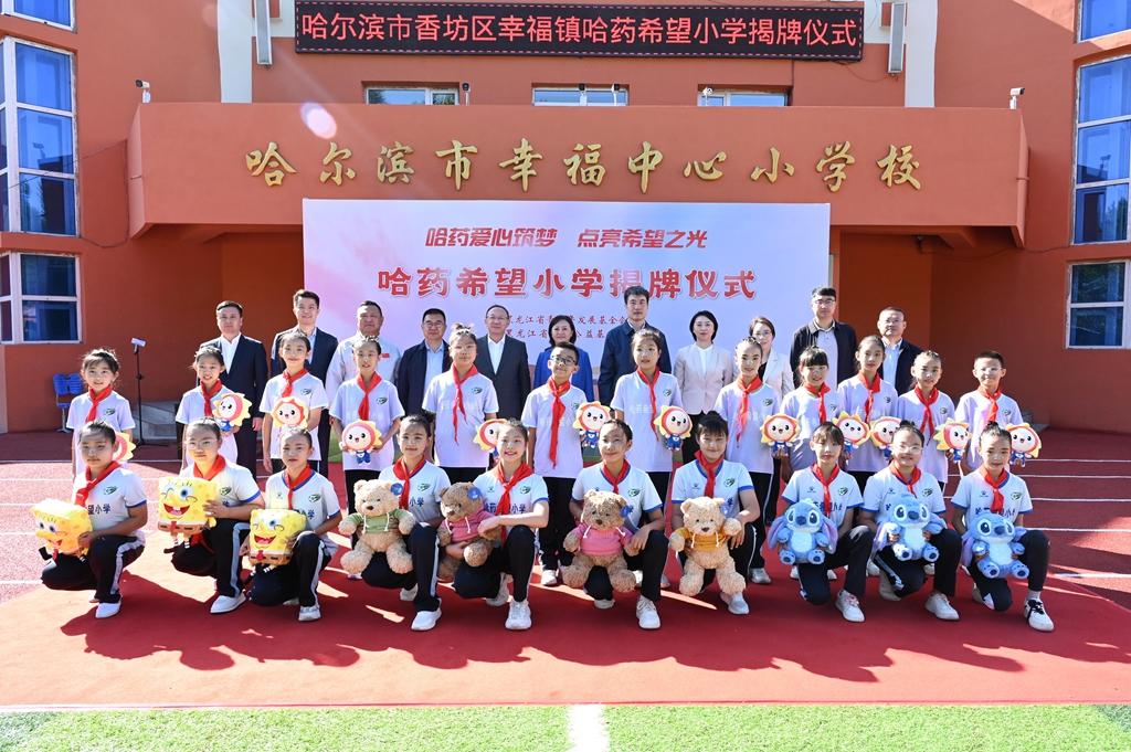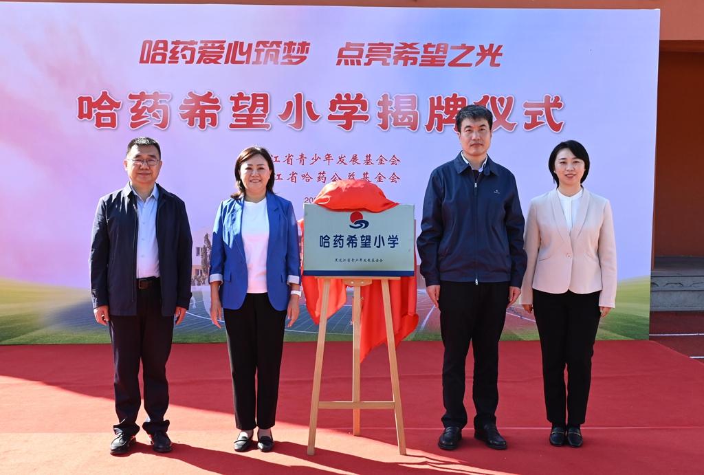 随后,领导嘉宾为哈尔滨市香坊区幸福镇哈药希望小学揭牌,标志着这所学校将以崭新面貌,承载更多梦想与希望,开启新的篇章。