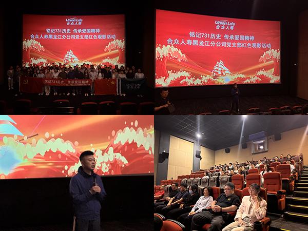 为深切缅怀革命先辈,大力弘扬爱国主义精神,进一步增强全体人员的历史责任感与岗位担当意识,合众人寿黑龙江分公司党支部组织开展“铭记731历史,传承爱国精神”红色观影活动。在党支部书记的带领下,分公司党员、入党积极分子、内勤全体员工及个险/银保/收展渠道外勤党员共同参与,通过观看历史题材影片《731》,重温那段刻骨铭心的历史。