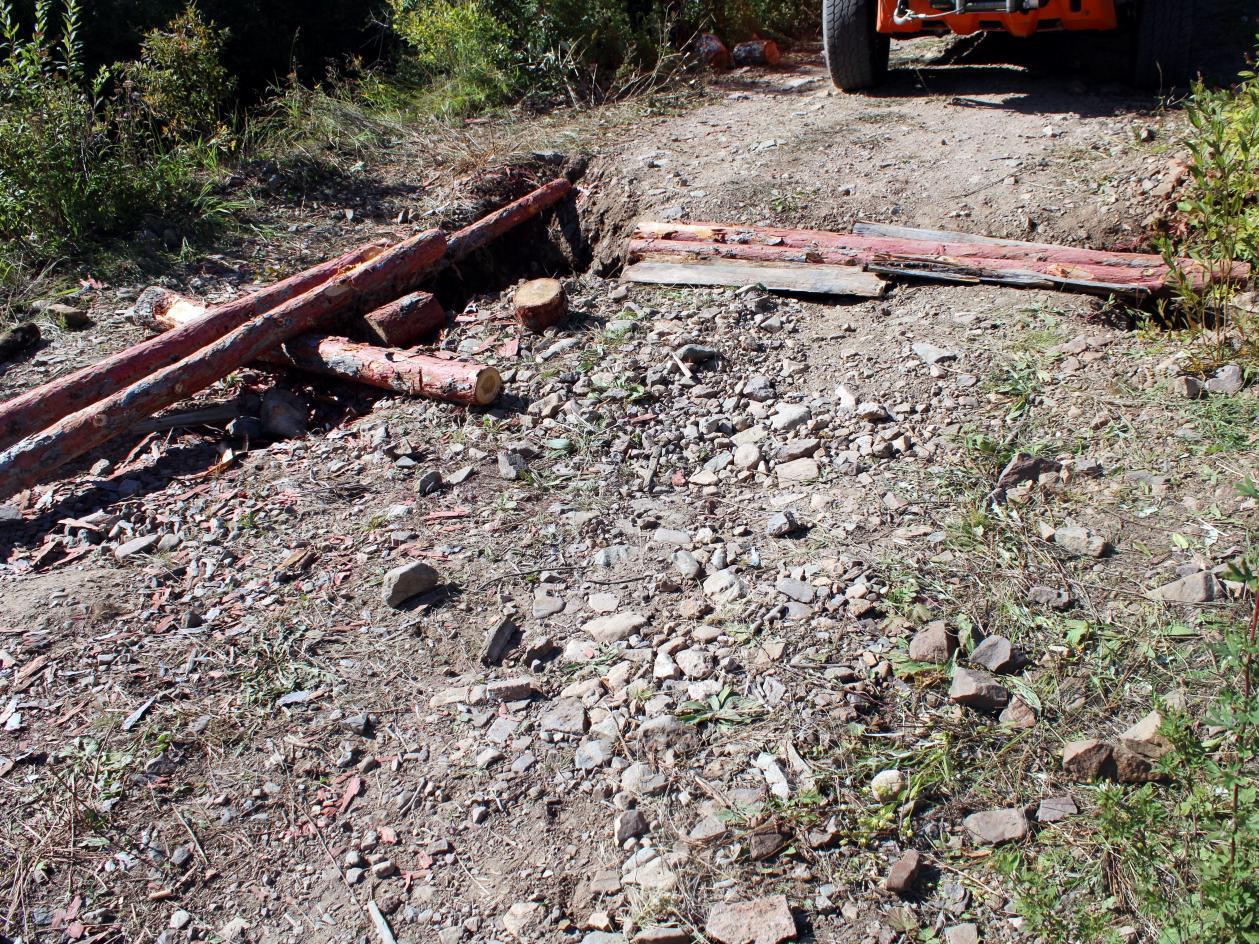 林场在对路面突发塌陷处进行应急处理(赵可心 摄)