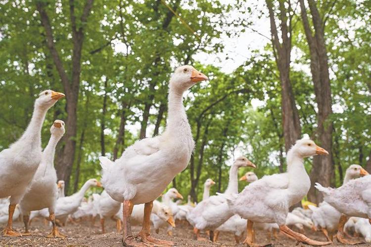 林下养鹅,“森林+”致富路子多。本报记者 唐海兵摄