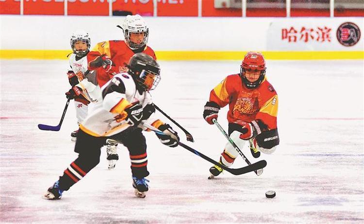 3日,在哈尔滨市南岗区炫采冰上运动中心气膜冰场内,一场精彩的冰球比赛正在进行中。突破、传球、射门……参赛队员大都是十岁左右的少年,但他们的拼搏精神并不亚于成年专业运动员。本报记者 苏强摄