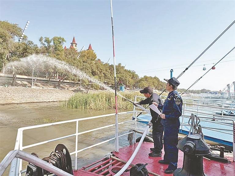 “船长您好,请配合开展安全检查。”在松花江客运码头,执法人员对辖区所有投入营运的客船开展“全维度、无死角体检”。从船舶的适航状态,到船员的适任能力;从载客定额的执行情况,到救生消防设备的配备,每一个细节都不放过。他们深知,只有将潜在的安全漏洞一一堵住,才能让游客的出行多点儿踏实。