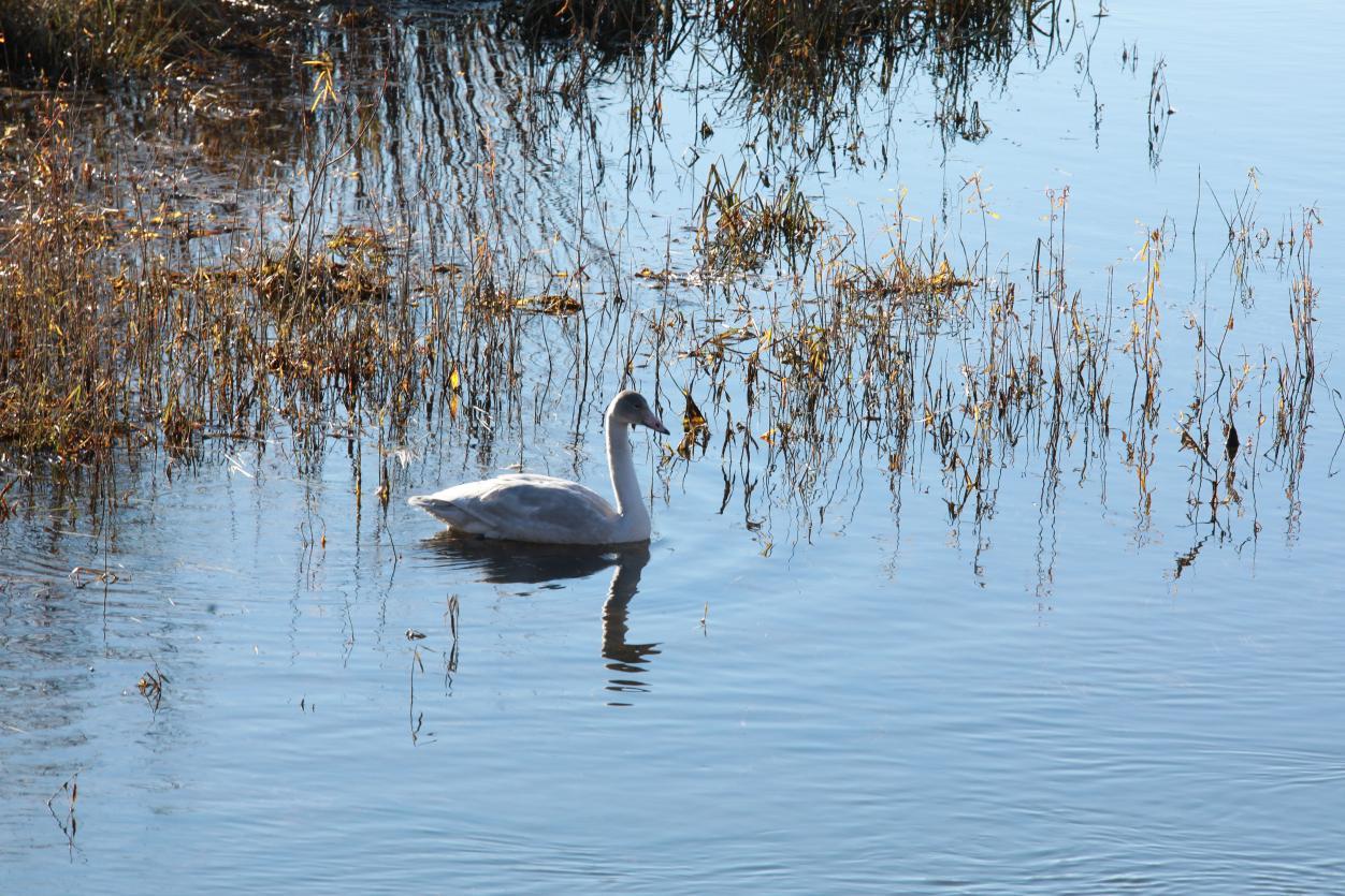 黑龙江经济网讯(王力)时值深秋,正是候鸟南迁的关键时节。近日,在阿木尔林业局国家湿地公园的河畔,惊喜发现一只国家二级保护动物亚成体大天鹅在此驻足嬉戏,洁白的身影点缀在秋日湿地间,它时而将细长脖颈探入水中,专注觅食;时而收拢羽翼,在碧波间悠闲游动,为这片湿地增添了一抹灵动生机。