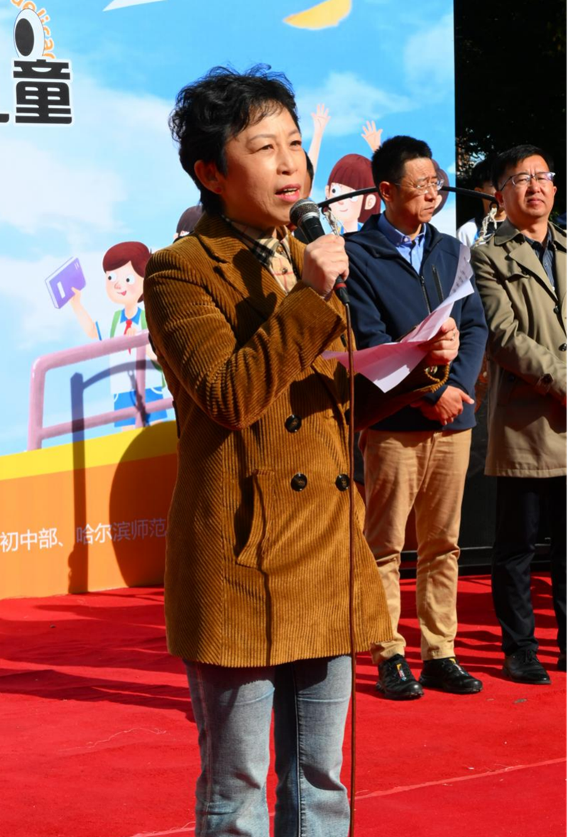 开幕式中,哈师大附中党委书记张静萍致开幕词,她提到:“物资的资助或许短暂,但善良的种子一旦播下,便会在心中永恒生长。希望你们在分工协作中懂得团结,在奉献爱心时体悟责任,让这场活动成为你们青春里最珍贵的成长课。”哈师大附中团委书记唐丹丹对黑龙江省青少年发展基金会一直以来的支持表示诚挚的谢意,同时感谢兄弟学校在义卖活动中的一路相伴以及各企业的大力支持。她表示:“在我校党委的领导下,从2018年第一届至今第五届,队伍不断壮大,在全社会的共同关爱下筹集善款十余万元,帮助留守儿童数百名。这场由附中学生组织成员独立筹备的大型义卖会给了我们每一个人表达爱意的机会,也许义卖品不是我们最需要的,但爱永远是被需要的。”