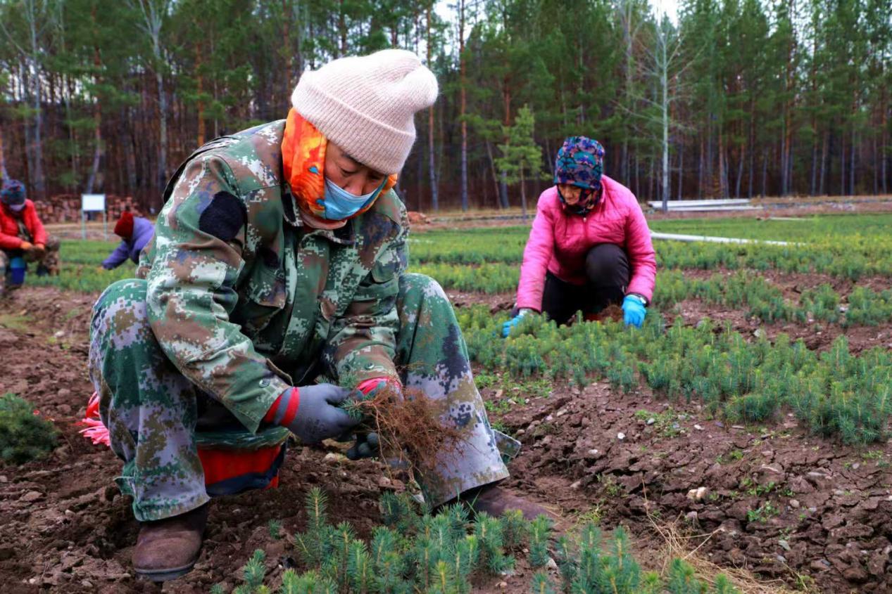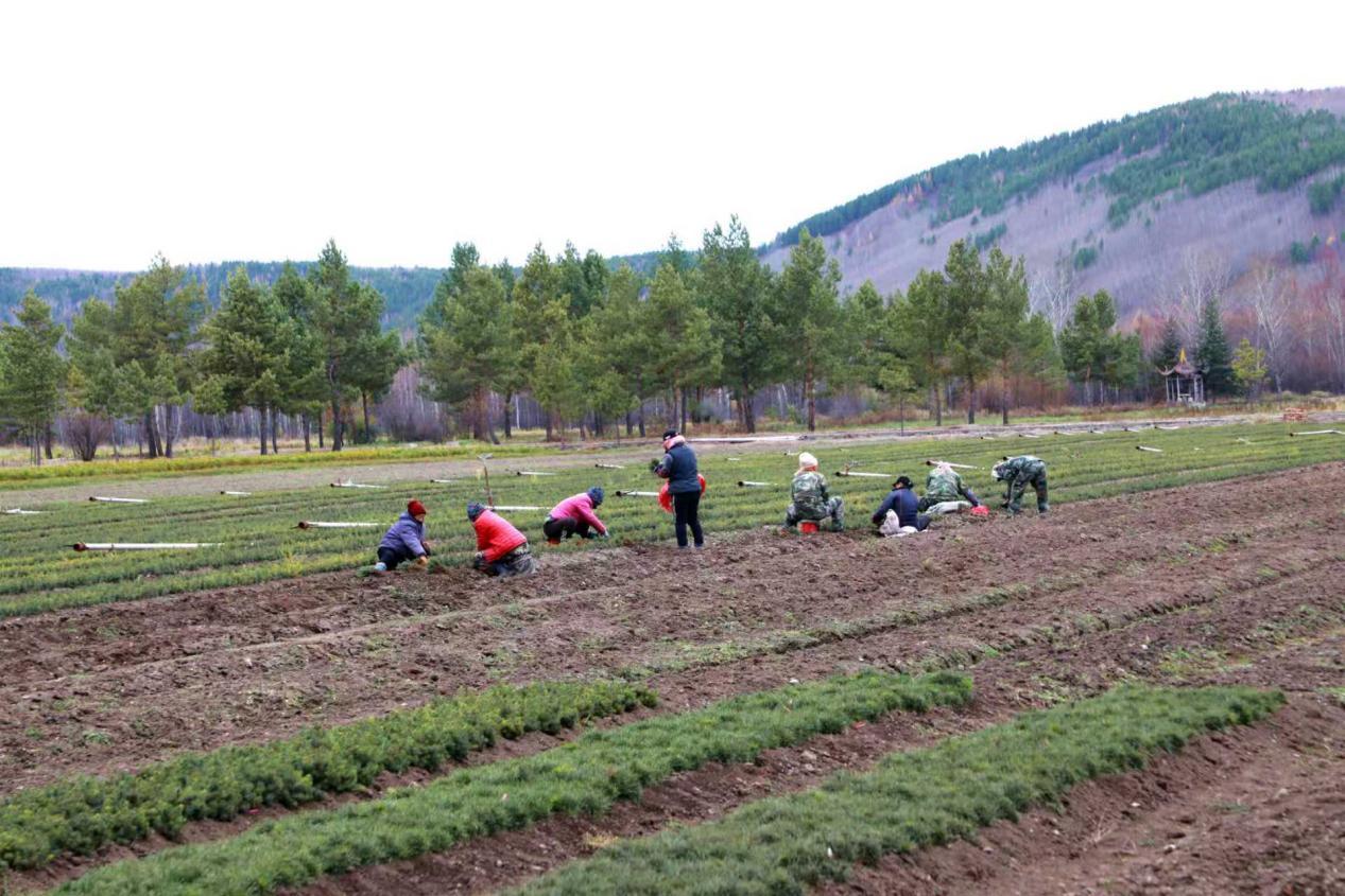 阿木尔林业局中心苗圃正在起落叶松苗木(王力 摄)