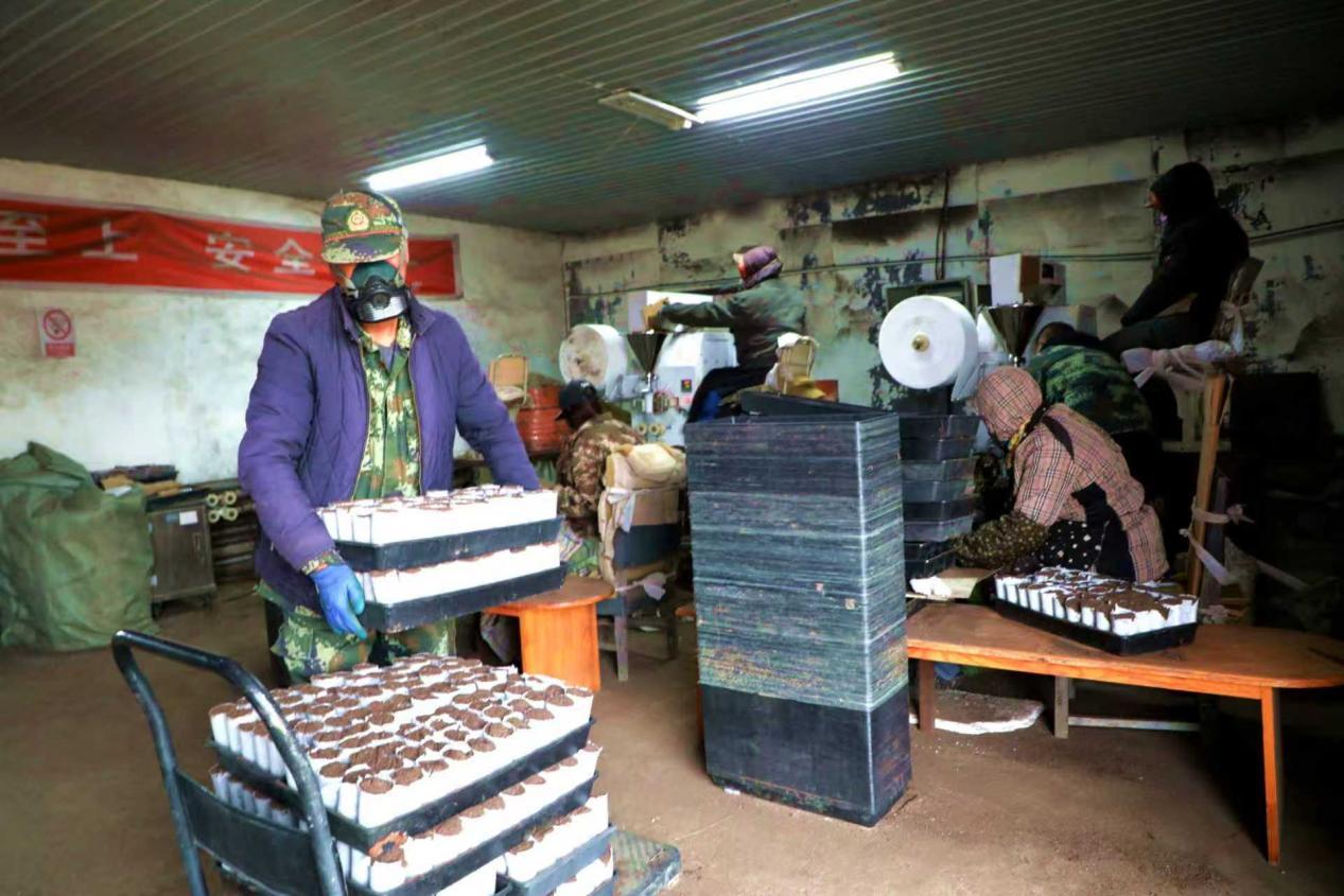 阿木尔林业局中心苗圃加班加点生产轻基质容器杯(王力 摄)