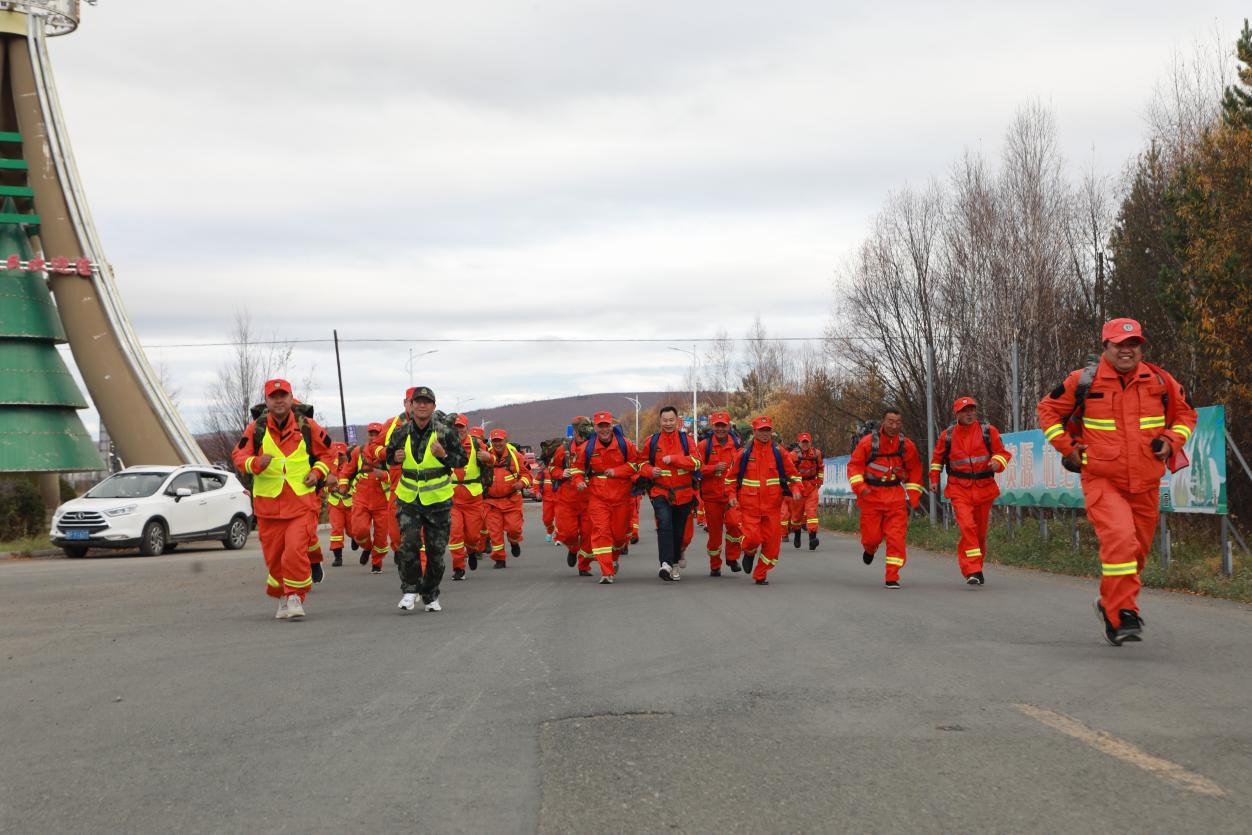 阿木尔林业局扑火专业队员在进行负重跑比赛(王力 摄)
