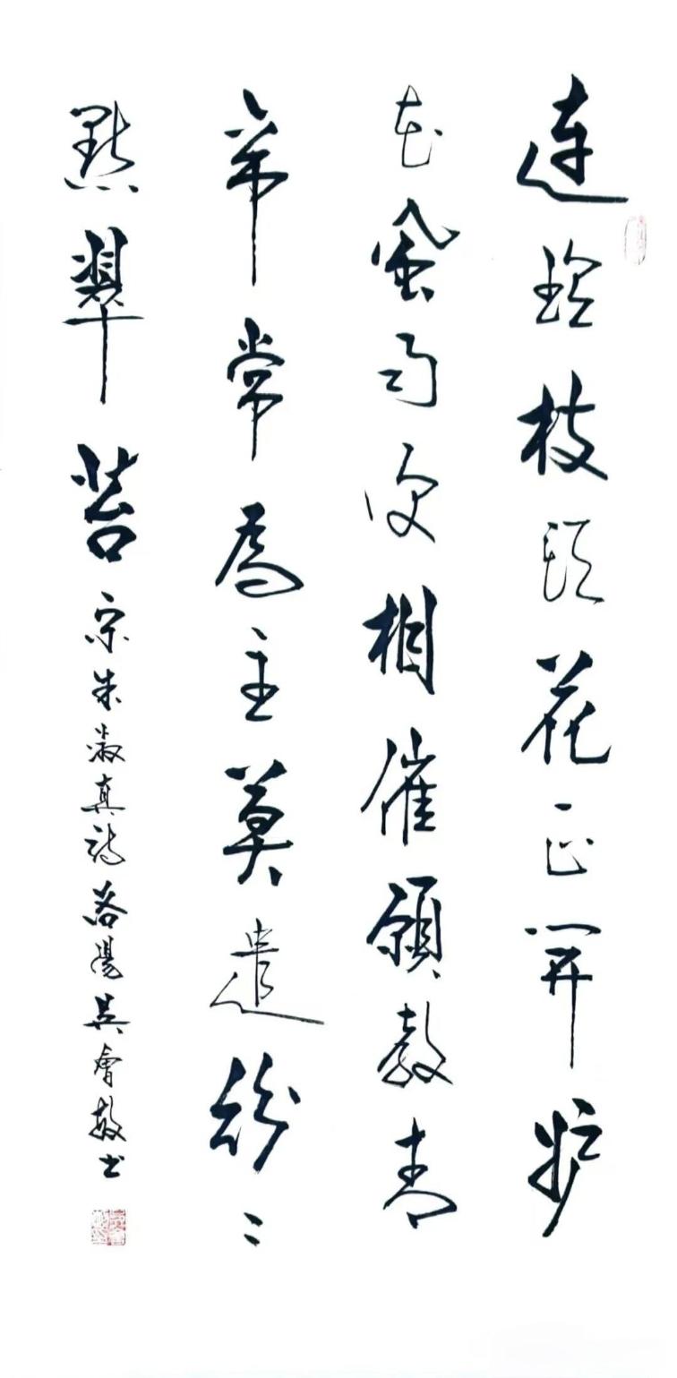 我想用著名书法家苏士澍、词作家欧荣生的《写好中国字,做好中国人》歌词收尾:写好中国字,做好中国人,写字要用心,做人要真诚,一字一世界,一笔一乾坤。祝愿吴会敏先生书法艺术长青。将吴先生书法作品附上,供广大读者鉴赏。