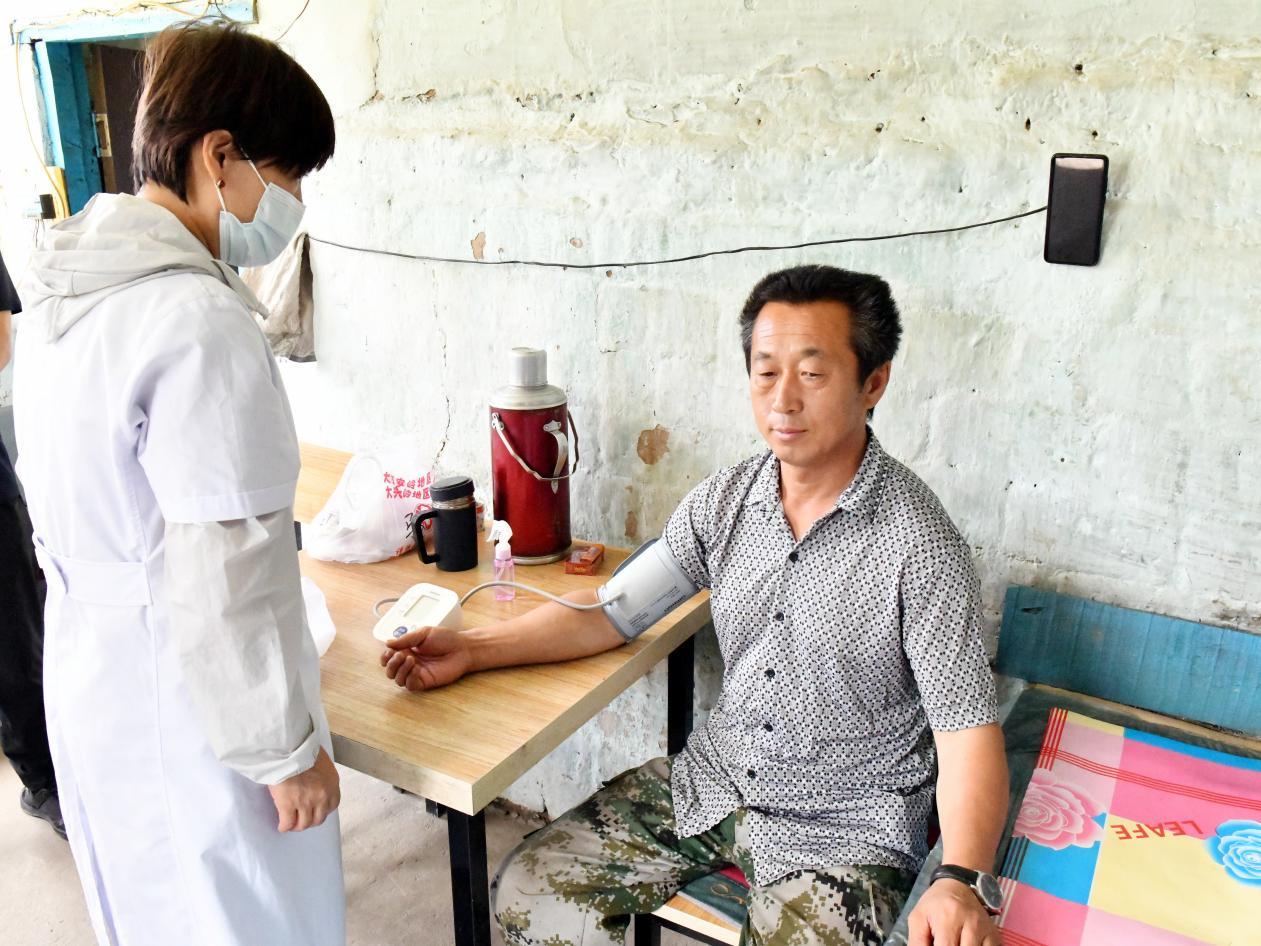 医护人员在瞭望塔为职工体检(张铭煊 摄)
