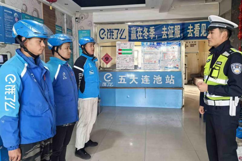 活动中,民警先后走进辖区外卖企业及物流运输企业,结合辖区交通管理工作实际,紧紧围绕当前广大交通参与者的出行特点,通过发放宣传资料、粘贴海报及以案释法等方式,向企业负责人及驾驶人详细讲解雨雪天气出行交通安全知识及酒驾醉驾、无牌无证、超员超载、不佩戴安全头盔、不系安全带等违法行为的严重危害和后果,同时现场警示交通参与者:“摒弃侥幸心理,从细节养成良好驾驶习惯,紧绷交通安全弦,时刻守住出行安全防线。”