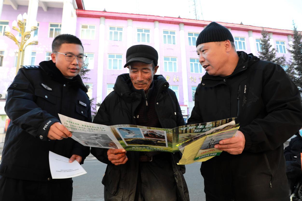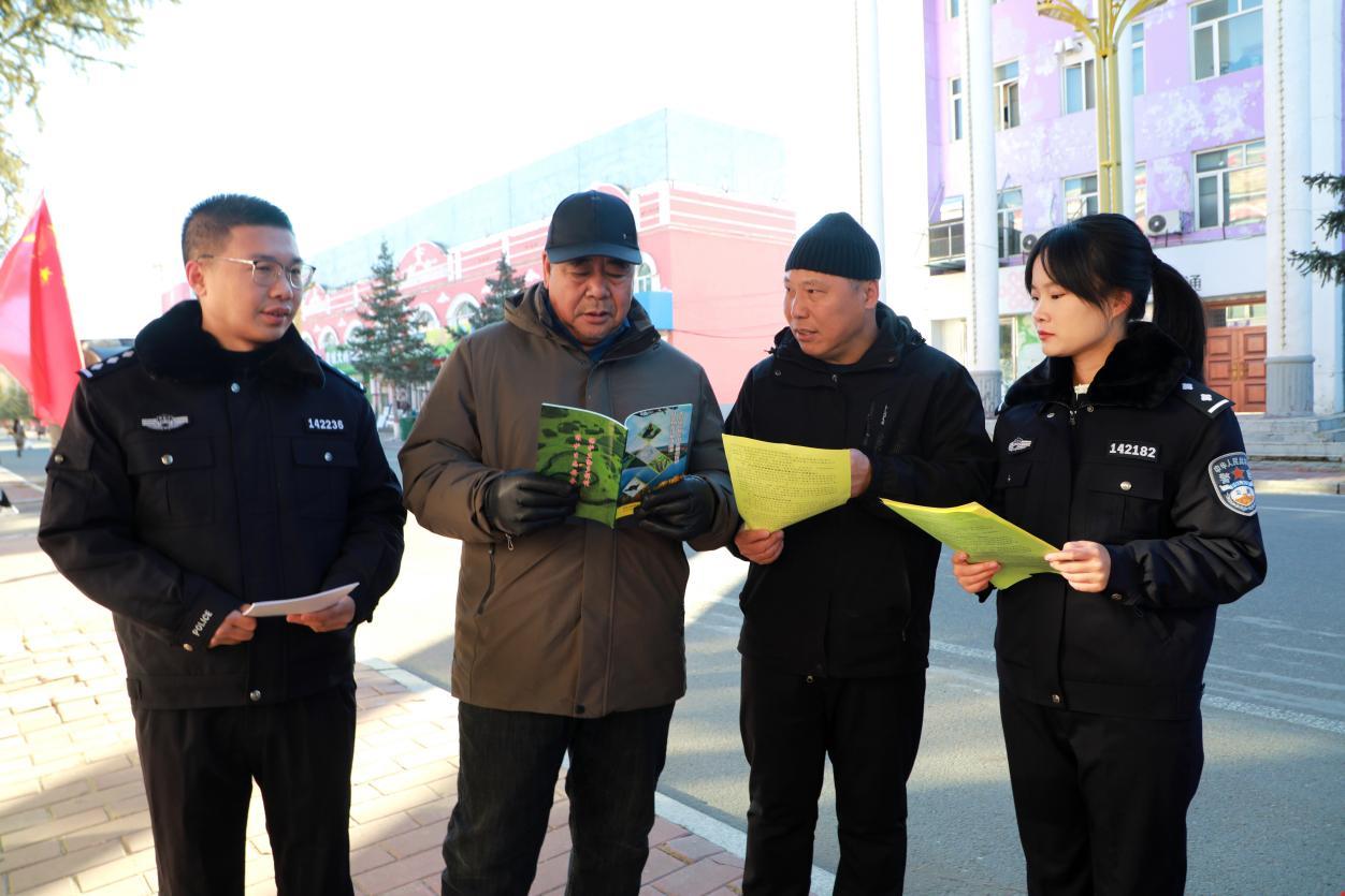 在林业局中华路繁华路段,联合宣传小组设立宣传台,鲜艳的宣传条幅在人群中格外醒目,工作人员向过往居民发放宣传单,细致解读《中华人民共和国野生动物保护法》《黑龙江野生动物保护条例》等法律法规核心条款。为增强宣传实效,工作人员结合反面典型案例,明确阐明非法猎捕、贩卖鸟类行为的违法属性及法律后果,引导居民自觉抵制并主动制止破坏鸟类等野生动物资源的行为。针对一线职工群体,宣传小组还通过鸟类图谱展示,系统普及鸟类知识与保护意义,推动形成“全社会参与保护、人人有责”的良好氛围。