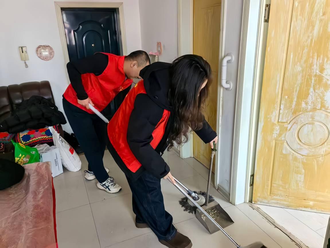 林业局志愿者在退休老职工家中打扫卫生(刘忠元 摄)
