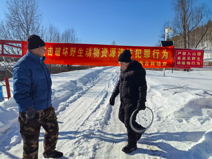 针对冬季盗猎高发特点,林场组织资源管护人员重点对施业区内野生动物活跃区、林缘地带、沟系河道等易安放捕猎具区域进行反复排查。工作人员凭借丰富经验与敏锐观察力,细致搜寻并清理雪下、灌木丛中隐匿的猎夹、猎套、粘网等非法器具,从源头消除安全隐患,坚决遏制乱捕滥猎违法行为。