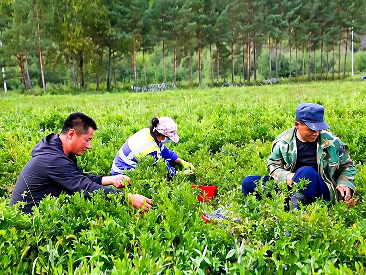 林场工作人员正在采摘蓝莓(张凯强 摄)