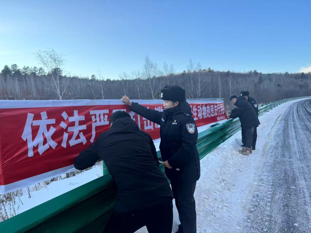 开展联合行动,筑牢安全屏障。湖通河林场与湖通河派出所坚持“联动共治、协同发力”理念。深入周边村屯,张贴《野生动物保护及防伤人警示告知》,并发放宣传警示单,结合辖区野生动物生活习性,讲解“遇大型野生动物如何避险”“不投喂、不靠近野生动物”等知识,现场解答群众疑问,消除麻痹大意思想。