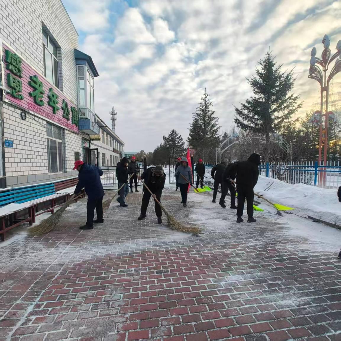 民生服务解难题,精准帮扶暖人心。聚焦老旧小区居民的日常需求,志愿服务队深入住户家中,帮助疏通堵塞下水管道、维修供水设施,并向居民普及冬季水管防冻常识,增强自我防护意识。同时,清洁维护泵房水泵设备,保障冬季供水系统稳定运行。针对困难职工和敬老院老人,志愿者们帮助打扫室内卫生、剁煤装煤、清扫积雪,消除出行安全隐患。在敬老院,清理宿舍和活动室区,结成帮扶对子,定期开展服务,确保老人生活环境安全整洁。