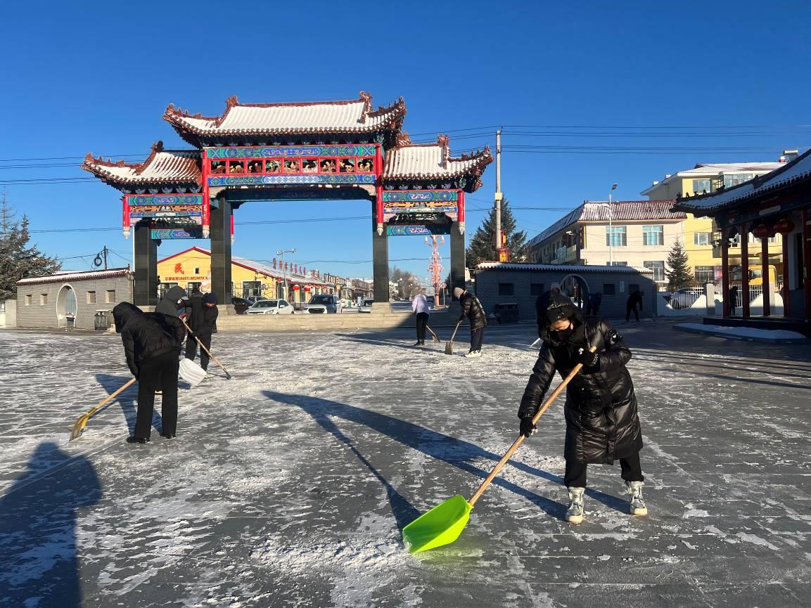 环境清理护阵地,红色基因永传承。党员志愿者深入65劳模工作室和铁道兵纪念碑,对室内卫生和室外积雪进行全面清理。维护了红色阵地的整洁面貌,强化了志愿者的责任意识与服务意识。行动还延伸至驿园公园,志愿者们清扫主入口、主干道、游步道及台阶处的积雪,确保职工群众散步安全无隐患,以实际行动传递冬日温暖,守护公共环境舒适宜居。