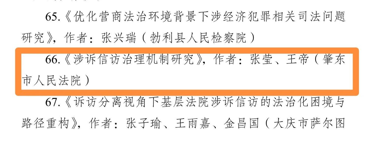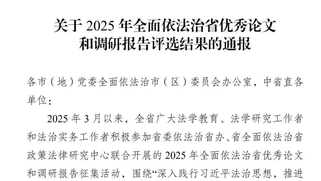 黑龙江经济网讯(董慧莹 李雪松)近日,省委依法治省办印发《关于2025年全面依法治省优秀论文和调研报告评选结果的通报(黑法办发〔2025〕10号)》,公布最终评选结果。本次评选活动共征集论文1370篇,经初评复审,共有465篇论文进入终评;经学术不端检测、评委会认真审阅,最终评选出获奖论文186篇。肇东市人民法院报送参评论文8篇,共有3篇获奖。