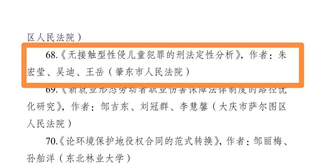 其中,督察室负责人杨红梅、审管办副主任朱宏莹、审管办副主任常亮撰写的论文《中间人截贿行为的司法认定研究》,荣获三等奖;审管办副主任朱宏莹、五站人民法庭负责人吴迪、审管办书记员王岳撰写的论文《无接触型性侵儿童犯罪的刑法定性分析》,荣获优秀奖;刑庭法官助理张莹、刑庭庭长王帝撰写的论文《涉诉信访治理机制研究》,荣获优秀奖。