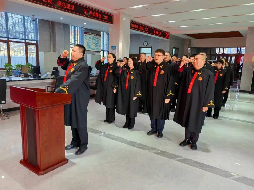 铿锵有力的誓言在全场回荡,传递着人民法院干警对宪法的尊崇、对法治的信仰和对人民的承诺。