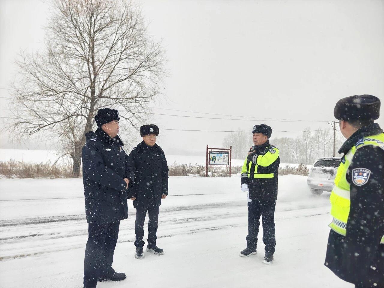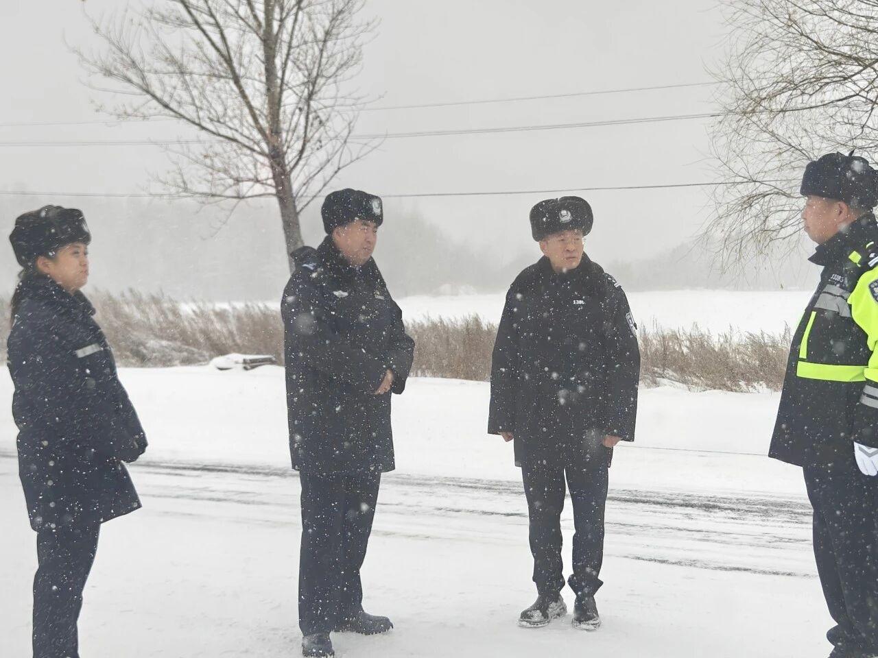 黑龙江经济网讯(李宝 记者梁新立)12月19日,五大连池市遭遇强降雪天气。为筑牢道路安全防线,保障极端恶劣天气下道路交通平稳有序,五大连池市公安局政委王秀东深入一线实地督导强降雪天气道路交通安全管理工作,副局长李继伟及相关负责同志陪同。