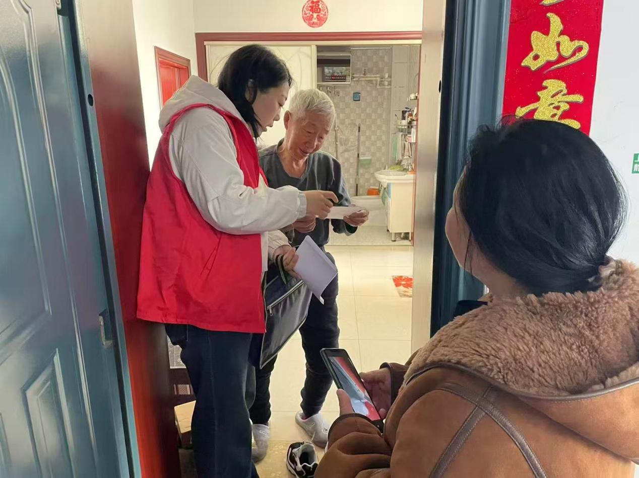 社区志愿者“敲门入户”开展弱势群体消防安全宣传活动(胡春磊 摄)