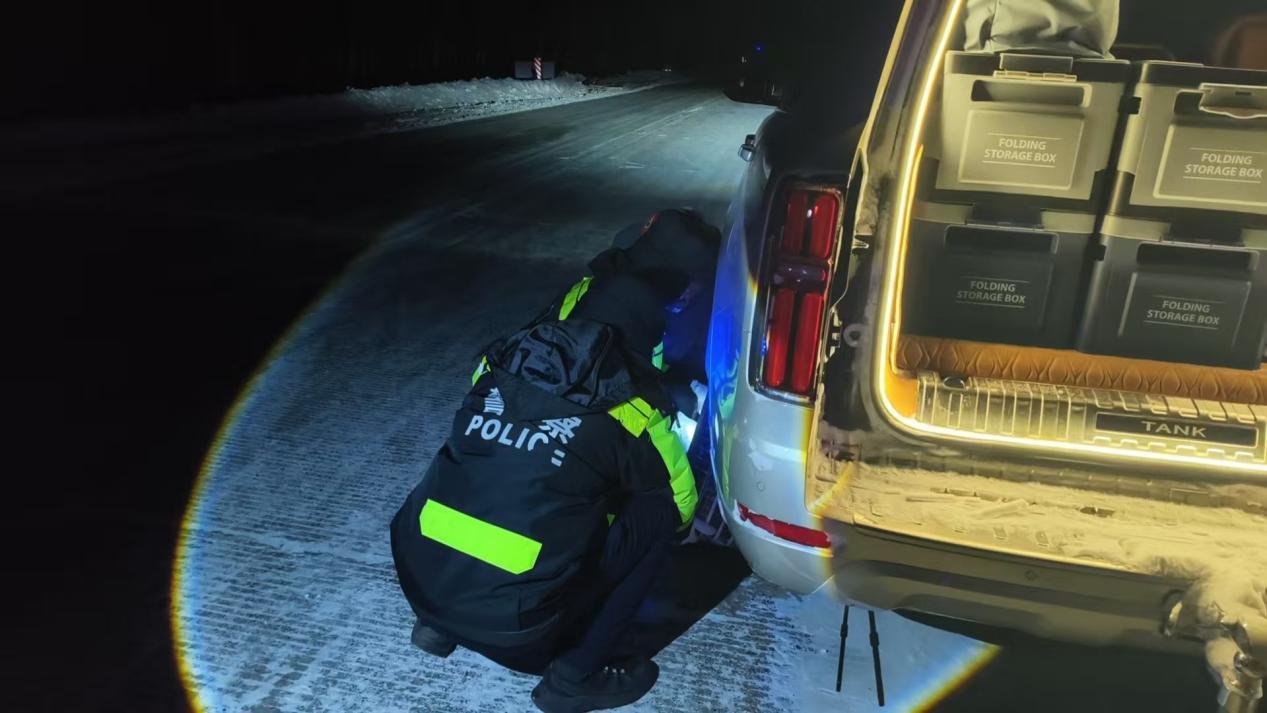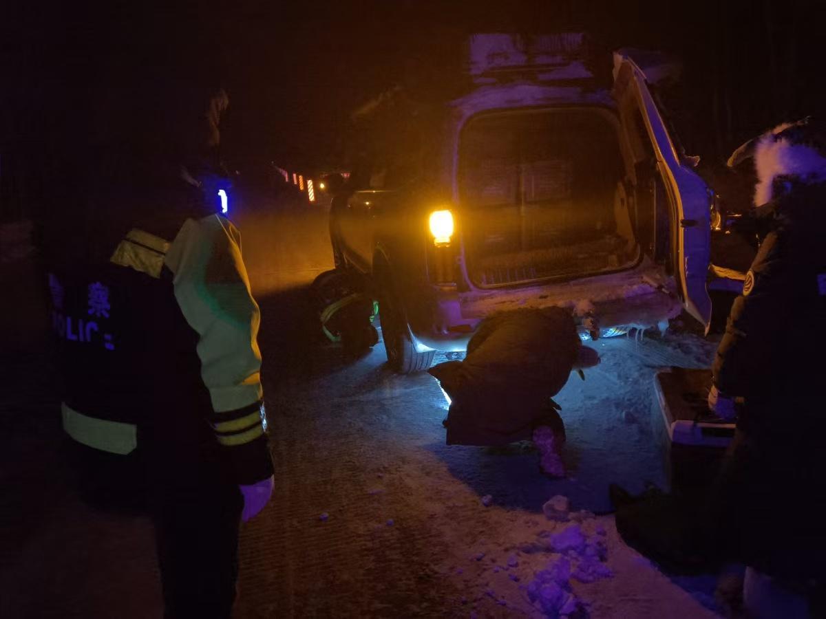黑龙江经济网讯(娄畅)近日,呼玛县辖区强降温、降雪伴随大风天气,给道路通行带来极大安全隐患,呼玛县公安局民辅警按照恶劣天气应急处置预案开展巡逻防控,将巡逻管控与便民服务相结合,及时为群众解决出行难题。12月25日晚,民辅警巡逻中及时救助一台爆胎车辆。