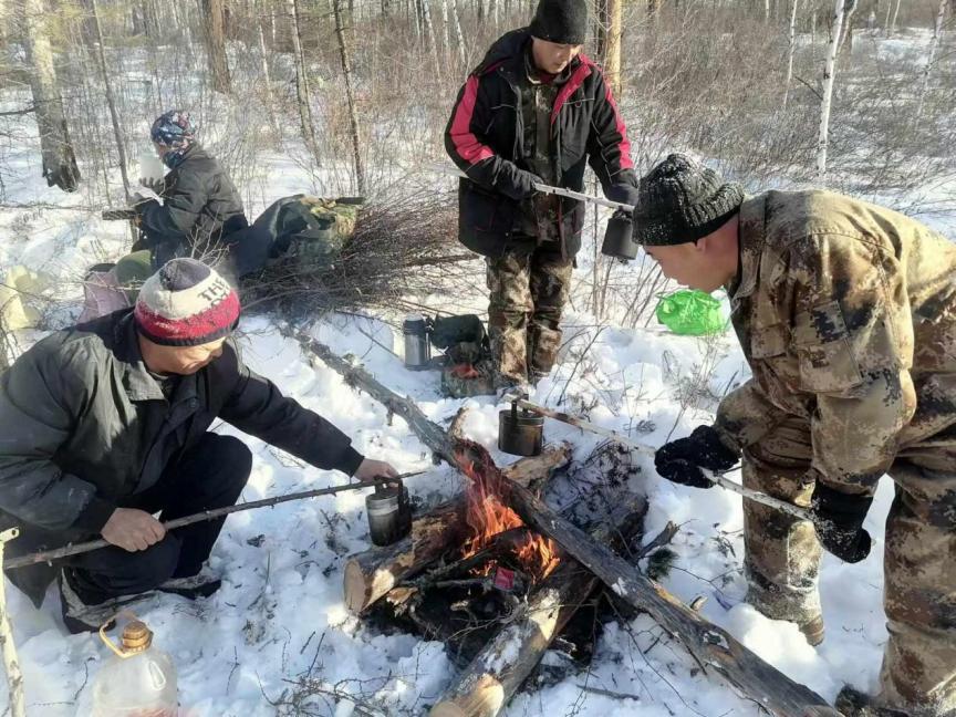 餐风饮雪不言苦,苦中作乐显担当。正午时分,忙碌的作业暂告一段落,林间背风处便成了临时“餐桌”。职工们聚在一起,围坐在火堆旁,就着寒风,分享着热气腾腾的盒饭。没有舒适的就餐环境,只有白雪皑皑的林海作伴;没有丰盛的佳肴,只有简单的饭菜暖胃暖心。大家边吃边聊,交流着当天的作业进度,分享着林区里的新鲜事,爽朗的笑声回荡在林间。艰苦的条件丝毫没有消减大家的干劲,反而凝聚起攻坚克难的强大合力,这便是育英林场人独有的“苦中作乐”,更是对绿水青山的执着坚守。