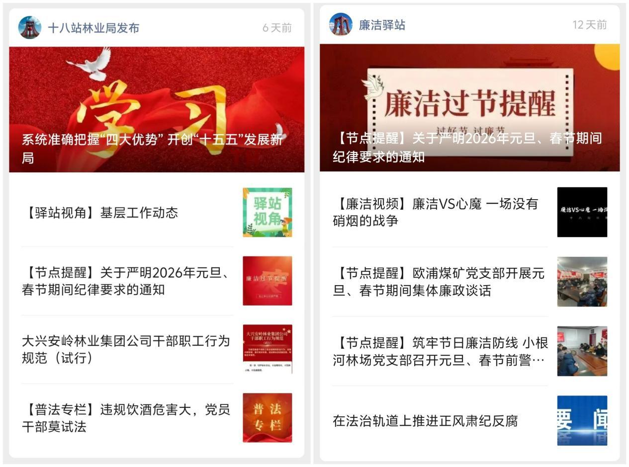 黑龙江经济网讯(张玉成)为持续加固中央八项规定精神堤坝,严防“四风”问题反弹回潮,十八站林业局纪委紧盯关键节点,坚持严字当头,围绕干部职工请销假制度执行、公车公库管理及中央八项规定精神落实等情况,在节前、节中、节后三个阶段开展了全方位、多层次的监督检查,进一步营造风清气正、廉洁平安的节日氛围。