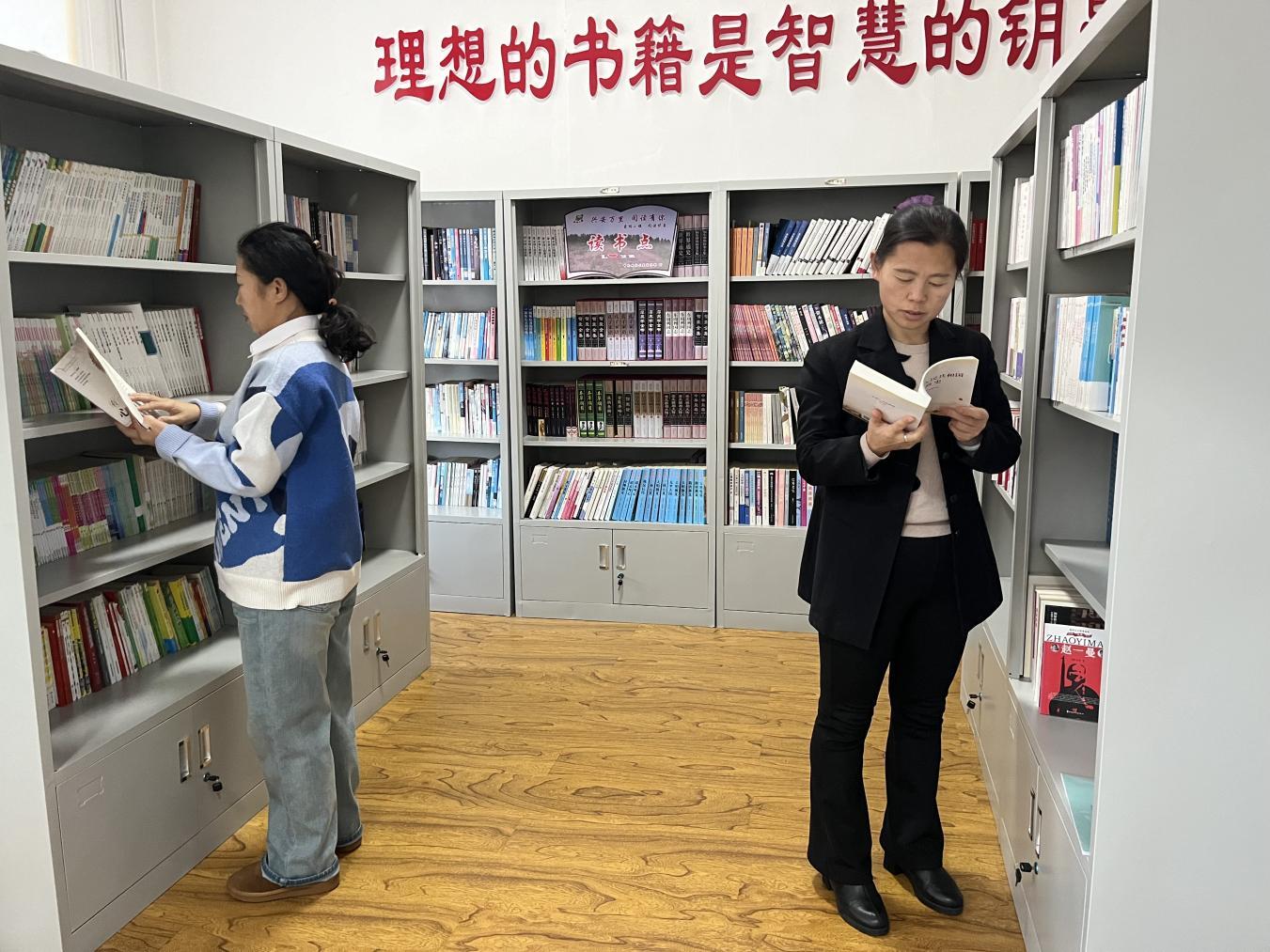 林场干部职工正在挑选书籍(赵可心 摄)