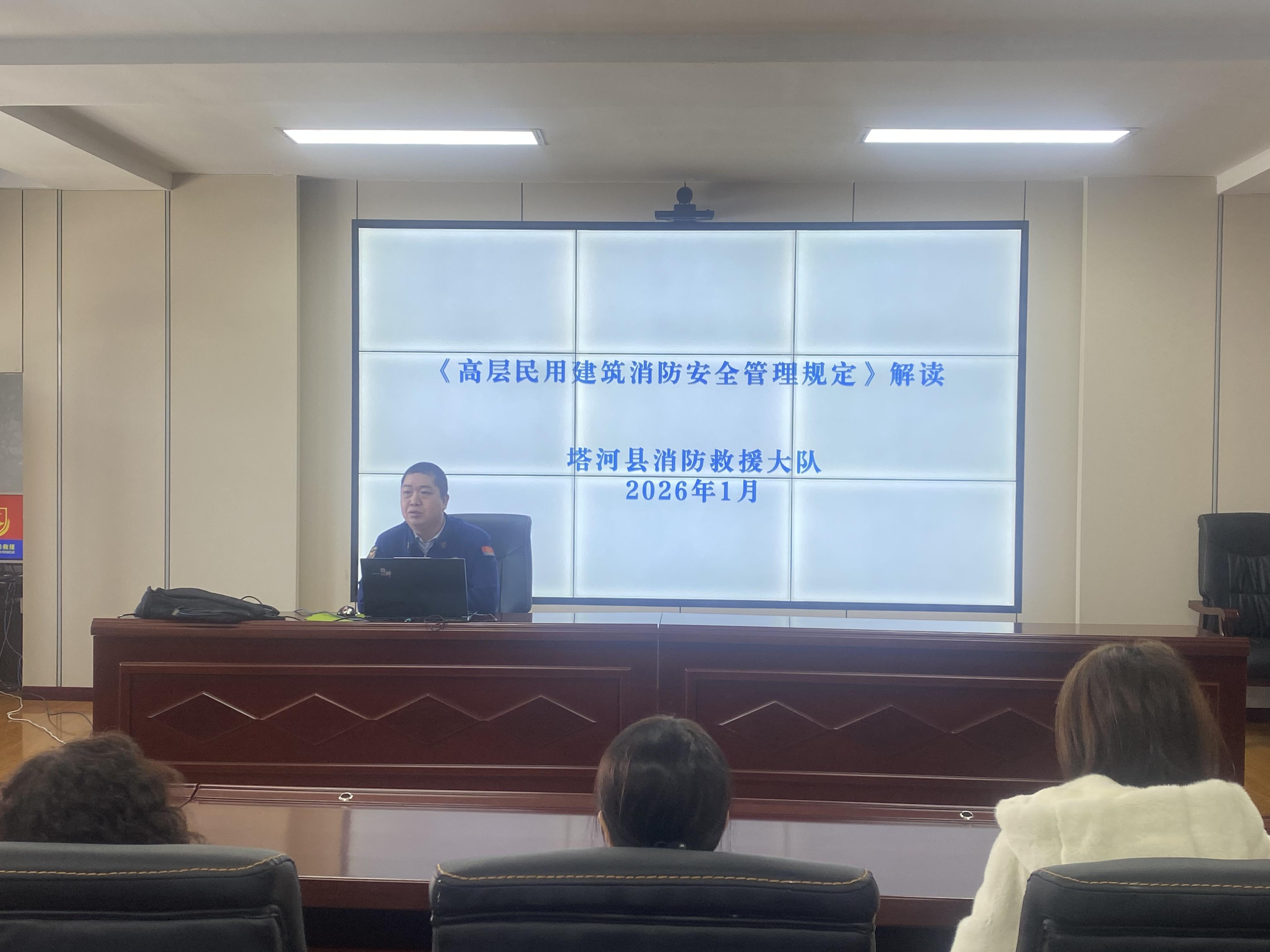 黑龙江经济网讯(孙珍珍)为切实规范高层建筑消防安全管理,有效防范化解重大火灾风险,1月15日,塔河县消防救援大队组织辖区各高层建筑管理人召开《高层民用建筑消防安全管理规定》(以下简称《规定》)专题培训会。