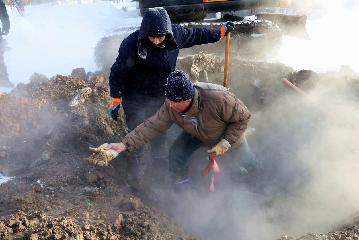 零下40℃的严寒中,抢修人员的脸颊、帽子很快结满冰霜,却丝毫没有退缩。他们相互配合,合力抬起管道、站在冰冷水坑中徒手作业,争分夺秒更换新软接头,于13时20分完成分线管道抢修。就在大家打开阀门准备恢复供暖时,主管线突发新漏点,抢修人员来不及休整,立即投入新一轮抢修,直至15时30分,主管线漏点彻底修复,全线供暖恢复正常。