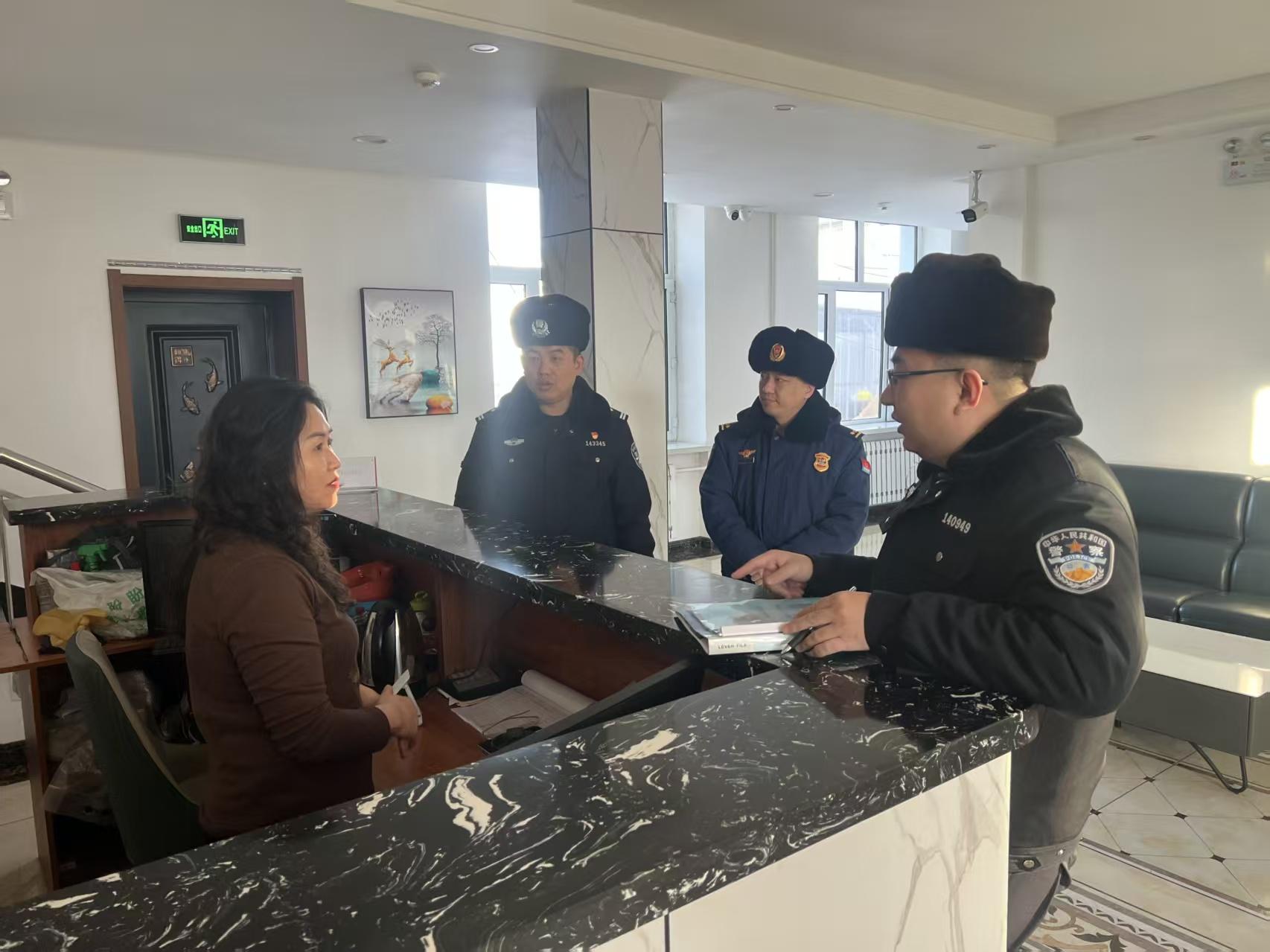 黑龙江经济网讯(李金娜)为进一步强化辖区住宿行业安全管理,及时消除潜在安全隐患,近日,大兴安岭松岭区公安局治安大队联合小扬气镇派出所及区消防救援大队,对辖区内宾馆、旅店、民宿展开全面安全检查。