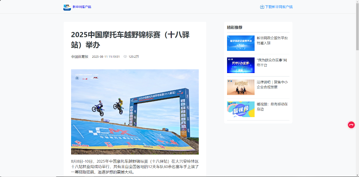 ——文旅融合激活品牌。举办2025中国摩托车越野锦标赛(十八驿站)新闻发布会,依托赛事开展“引擎轰鸣、巅峰之夜”文艺演出4场、“十八驿”风情版画展览体验活动,邀请区内和林业局14名“网红”开展网络采风直播,吸引3万人次参与互动,推动“文化+体育+旅游”深度融合,让“大美兴安、十八驿站”品牌影响力不断提升。