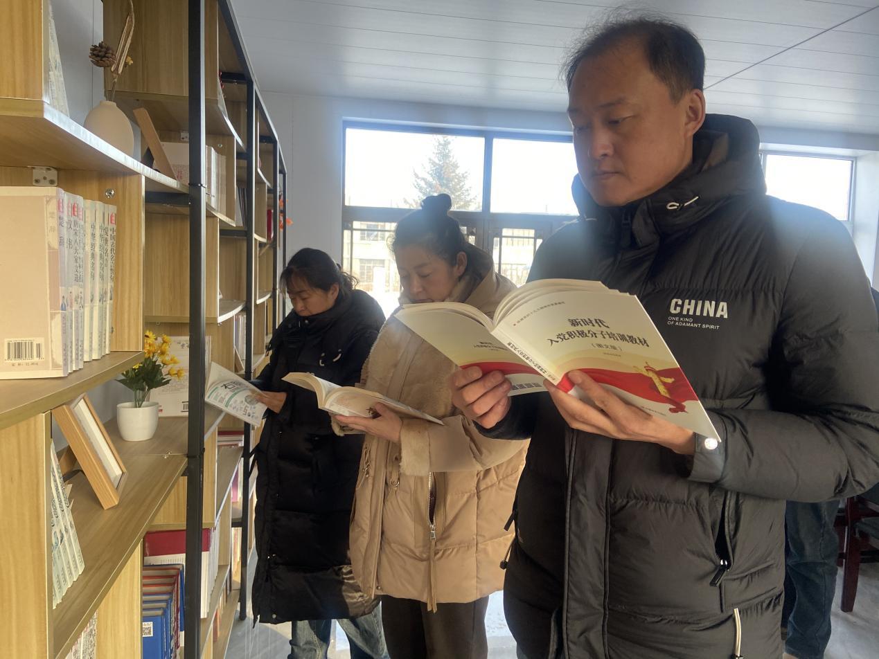 林场干部职工正在挑选阅读书籍(佟超 摄)