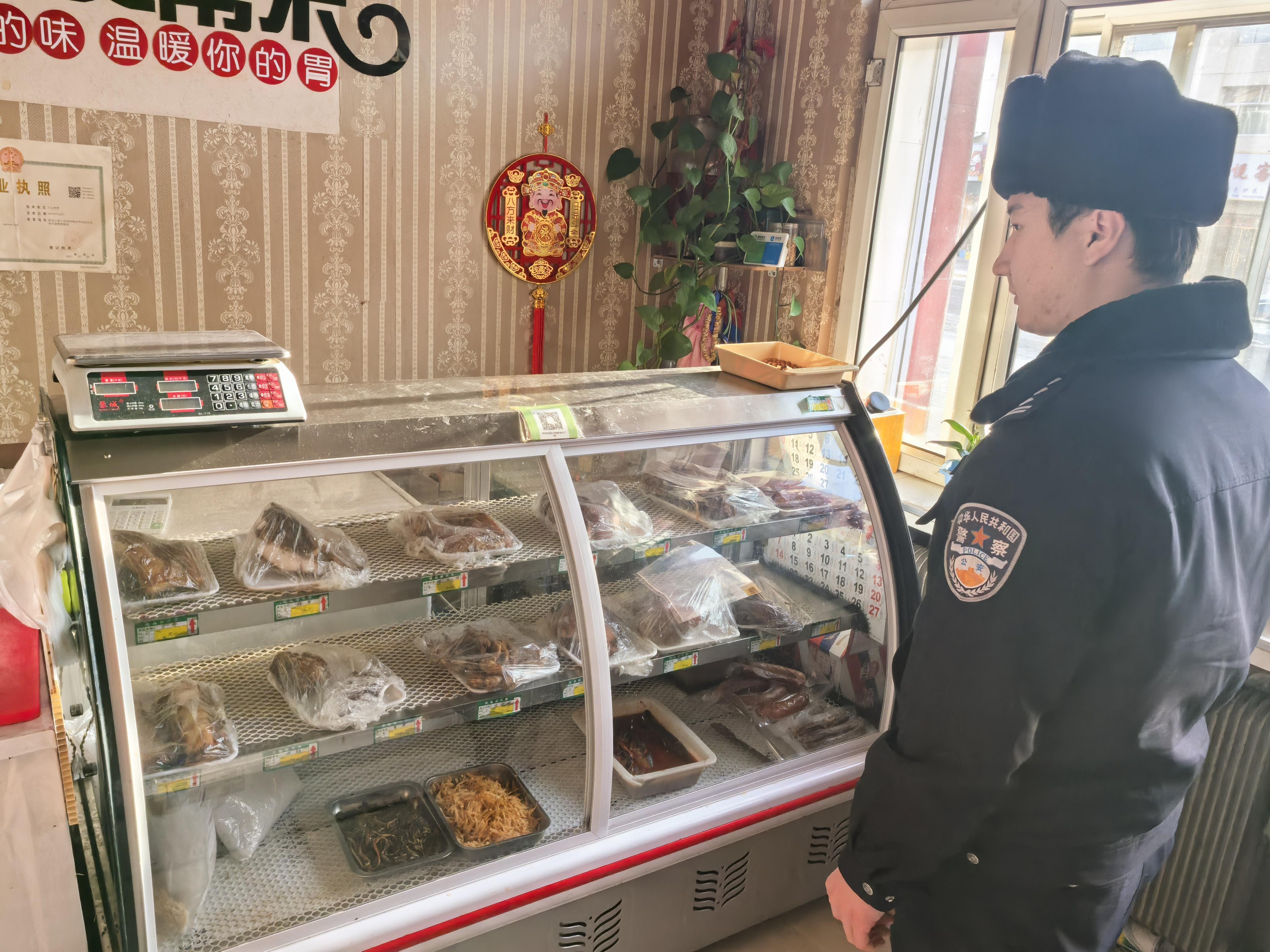 民辅警结合节前市场特点,采取“明察暗访+随机抽检”方式,对辖区肉制品经营店铺开展全面排查。现场检查中,发现1家店铺环境卫生不达标,执法民警当即责令其现场整改。