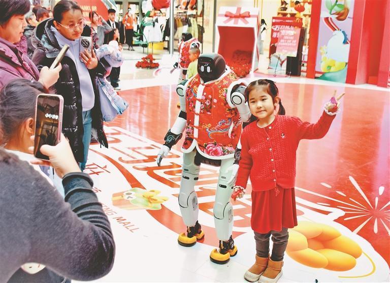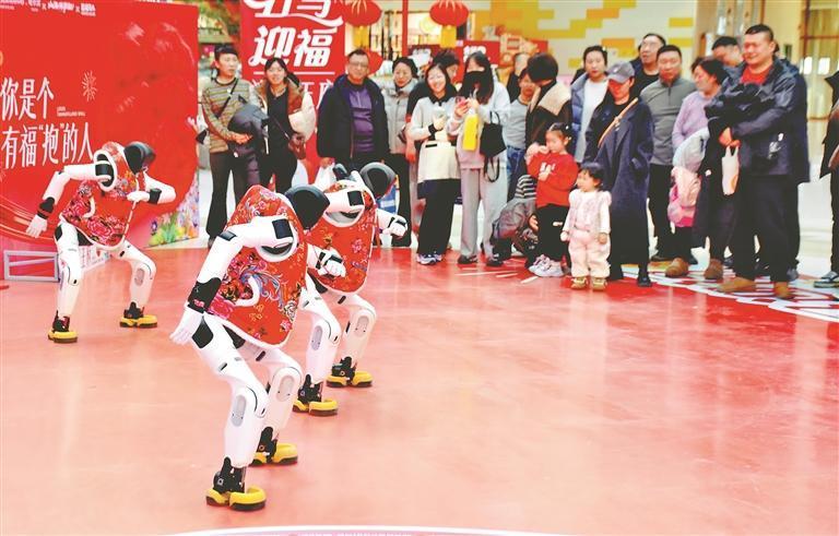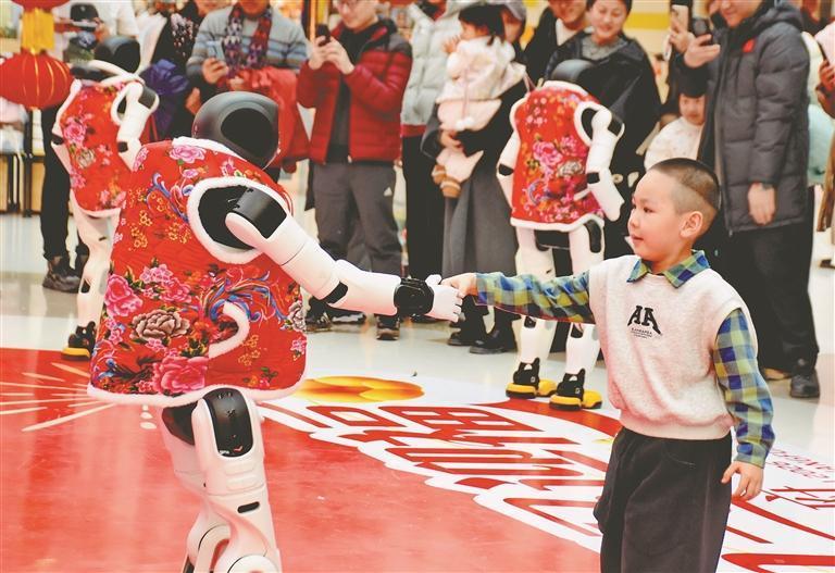 19日,正月初三。哈尔滨市道里区一家大型商场举行了机器人舞蹈表演,吸引许多市民游客驻足观看。走进场地的三个机器人身高1.5米左右,穿着红色棉坎肩,十分喜庆。在音乐伴奏下,它们翩翩起舞,动作整齐划一。表演结束后,机器人走进人群,与大家握手、合影、互动。春节假期,哈尔滨市多家商场都推出了机器人表演,让市民游客与最新科技来个亲密接触。