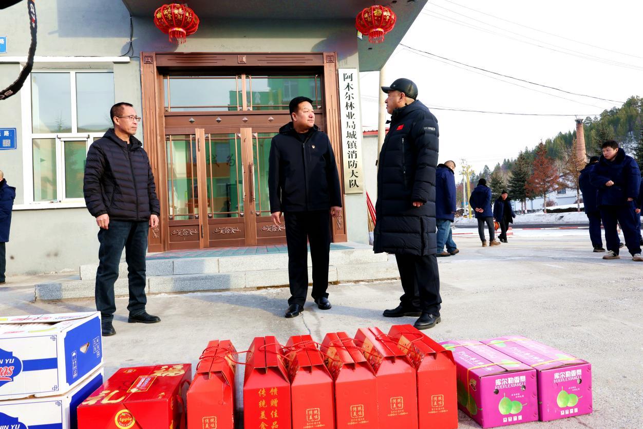 黑龙江经济网讯(王力)除夕佳节,万家团圆。2月16日,阿木尔林业局党委委员、工会主席胡长清,林业局副局长孙乃彬带队,带着精心准备的慰问品,先后前往城镇消防大队、环卫队、物业公司、阿木尔森林分局、阿木尔镇政府等多个一线单位,走访慰问春节期间坚守岗位的干部职工、公安干警及基层工作人员,将党组织的深切关怀与新春祝福送到坚守一线人员的心坎上。