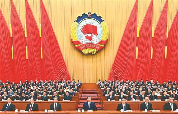 三月的北京,春启华章。人民大会堂大礼堂灯光璀璨,气氛隆重热烈。中国人民政治协商会议会徽悬挂在主席台正中,十面鲜艳的红旗分列两侧。