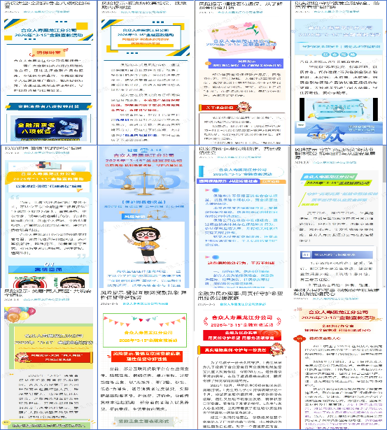 为全面贯彻落实中央经济工作会议、中央金融工作会议精神,深刻把握金融工作政治性、人民性,助力提升社会公众金融素养,帮助社会公众增强维护自身合法权益的意识和能力。合众人寿黑龙江分公司按照监管部门及总公司有关工作要求,组织所辖各单位同步全面落实开展2026年“3·15”金融消费者权益保护教育宣传活动。