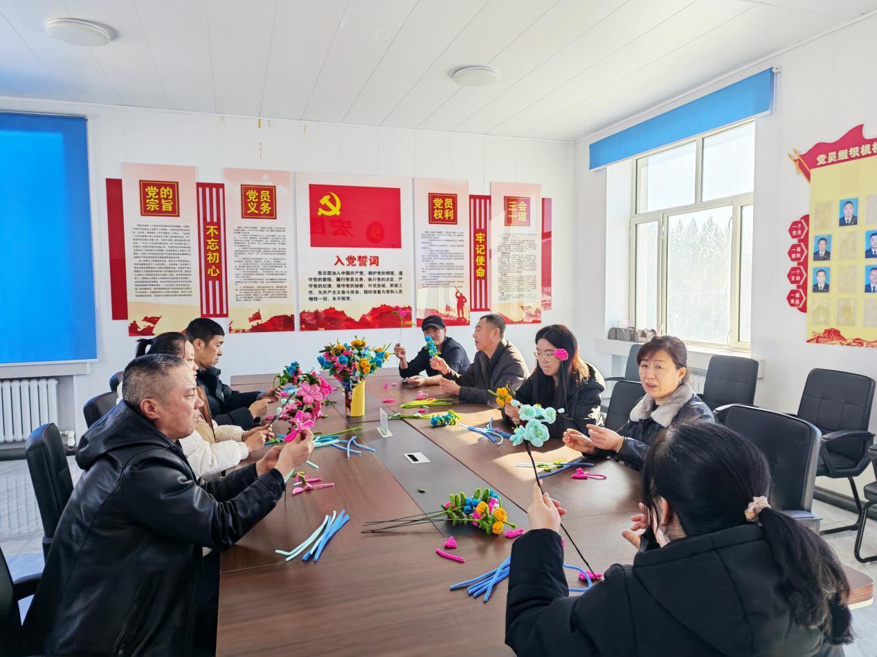 活动现场,大家认真聆听专业人员讲解野生兴安杜鹃、野生蓝莓等本土植物保护的相关知识。随后,通过观看教学视频系统地学习扭扭棒基础造型技巧,在动手实践中加深对野生植物的保护与认知。实操环节,职工们围坐一堂、相互切磋,指尖翻飞间,一根根彩色扭扭棒被巧妙弯折、组合,化作栩栩如生的野生兴安杜鹃、饱满圆润的蓝莓果束等精美手工作品。作品展示环节,大家踊跃分享创作灵感、交流制作心得,集体合影定格温馨瞬间,现场氛围轻松融洽、其乐融融,充分展现出林场职工昂扬向上、心灵手巧的良好精神风貌。