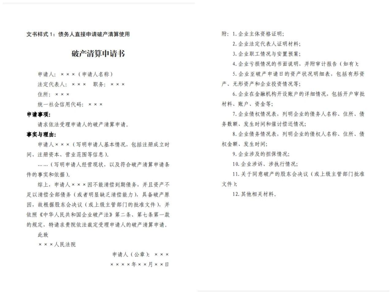当事人可对照范本直接填写,有效解决因不熟悉文书格式导致的信息不全、表述不规范等问题,大幅降低破产申请门槛与准备成本。