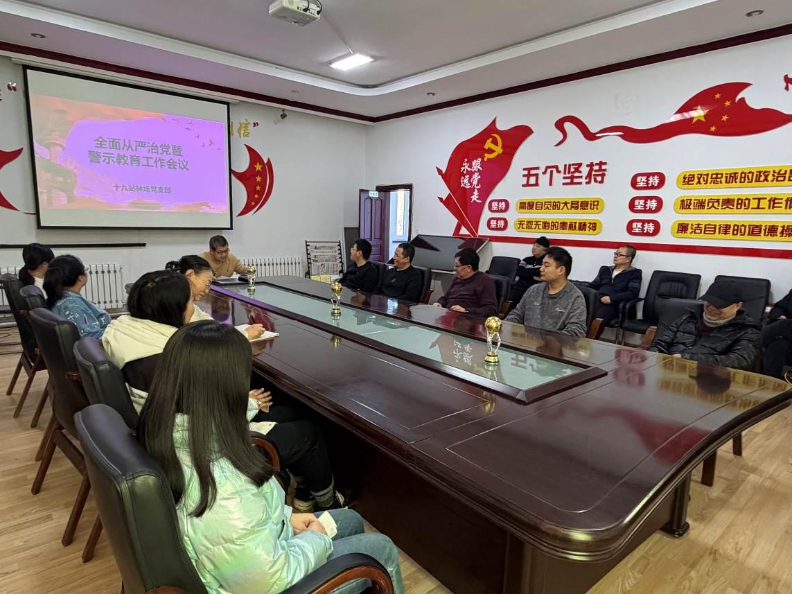 黑龙江经济网讯(王秀萍)近日,十八站林业局十九站林场党支部召开2026年全面从严治党暨警示教育会议,深入学习贯彻习近平总书记在二十届中央纪委五次全会上的重要讲话精神,系统总结林场2025年全面从严治党工作,安排部署2026年全面从严治党重点任务,并结合实际开展警示教育。